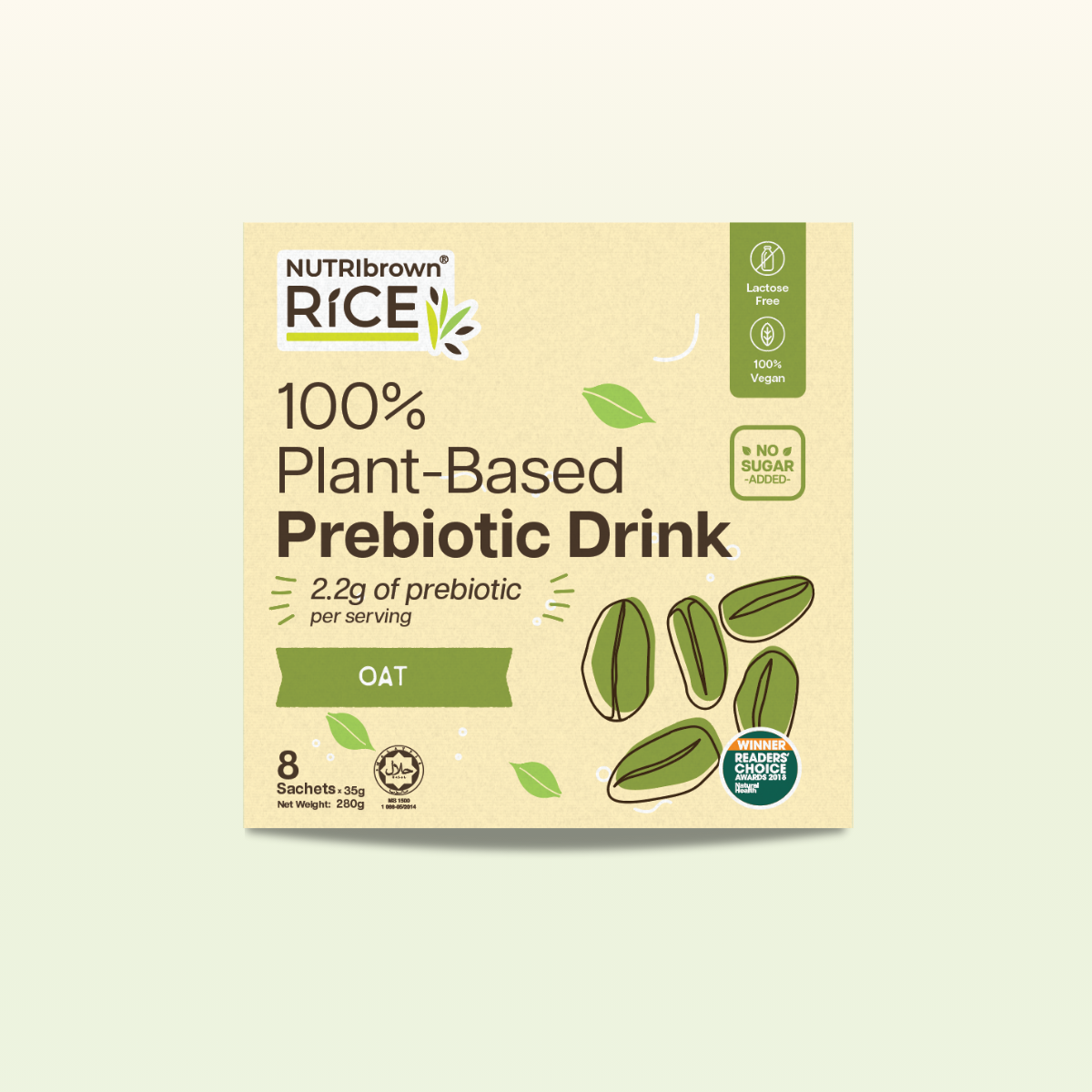 Health Benefits: Oats contain beta-glucan, which binds with cholesterol to prevent its absorption in the gut, promoting heart health. Combined with brown rice prebiotics, it’s an awesome blend.