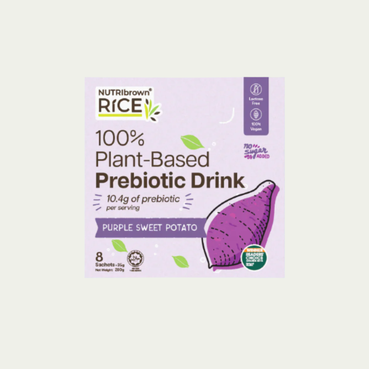 Ingredients: Brown Rice Powder (50%), Coconut Oil Powder, Inulin (Prebiotic from Chicory Root), Coconut Oil Powder, Purple Sweet Potato Powder.