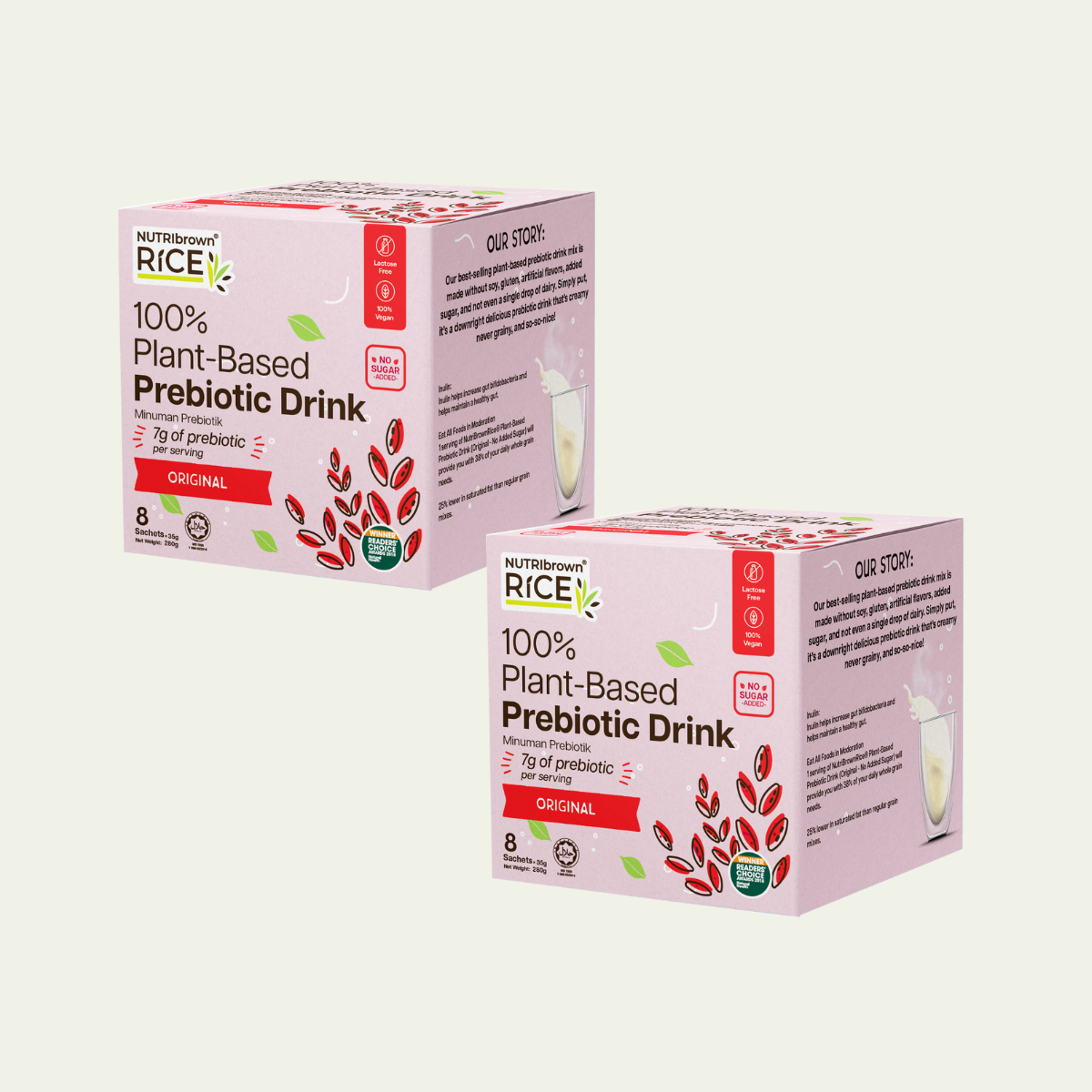 Nourish your gut naturally with NutriBrownRice® Original – a 100% plant-based prebiotic drink made from brown rice, inulin (prebiotic fiber), and coconut oil powder.